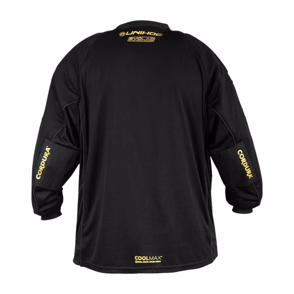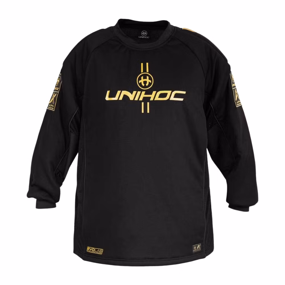 ALPHA EVOLAB är Unihocs nya toppmodell i målvaktssegmentet, utvecklad i samarbete med världsmålvakten Jon Hedlund. Plaggen är tillverkade i de bästa materialen på marknaden för att nå absolut toppkvalitet och ge lång hållbarhet. För att ge bättre skydd för målvakten så är tröjans frontparti och ärmar utrustade med ett tunt lager av extra vaddering.